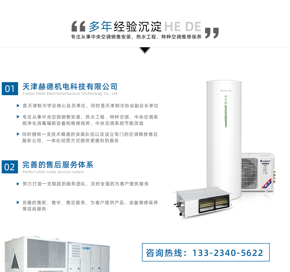 天津赫德機(jī)電科技有限公司是天津制冷學(xué)會會員單位,同時(shí)是天津制冷協(xié)會副會長單位,位于天津市海泰經(jīng)濟(jì)區(qū),依托天津制冷學(xué)會團(tuán)隊(duì)資源從事中央空調(diào)銷售安裝,熱水工程、特種空調(diào)、中央空調(diào)系統(tǒng)凈化消毒輔助設(shè)備和維修保養(yǎng),中央空調(diào)系統(tǒng)節(jié)能改造。赫德機(jī)電致力于綠色建筑暖通,低能耗解決用戶冷暖,全心全意為用戶負(fù)責(zé),讓大地更綠天空更藍(lán)。企業(yè)服務(wù)宗旨:做綠色建筑暖通,低能耗解決用戶冷暖,全心全意為用戶負(fù)責(zé),讓大地更綠天空更藍(lán)。